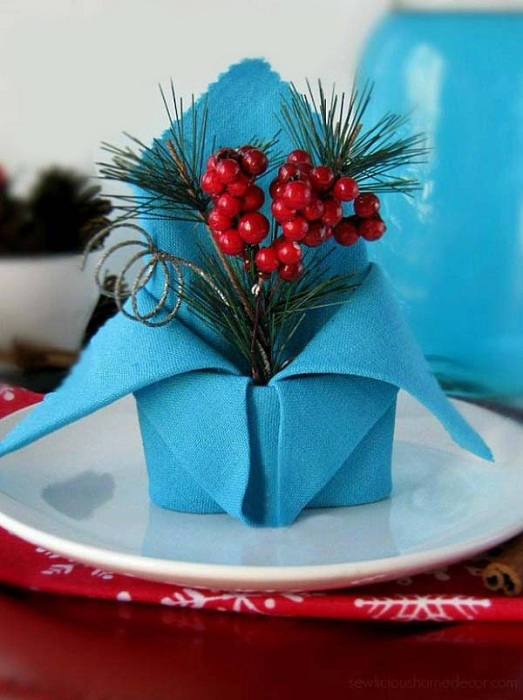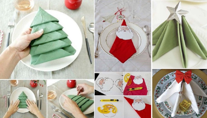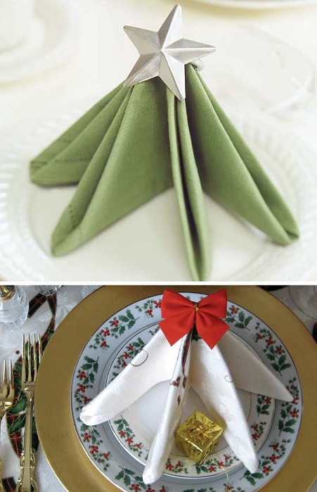 16 ярких способов украсить рождественский обеденный стол салфетками